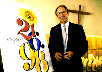 Robert Wachowsky - 25 Jahre Pfarrer in unserer Gemeinde Am 18. Juni 1978 wurde Pfarrer Robert Wachowsky als Pfarrer des 1. Pfarrbezirks der Heiland-Kirchengemeinde in sein Amt eingeführt (übrigens als Amtsnachfolger von Pfarrer Friedrich Bleek.) 25 Jahre sind nun daraus geworden – Gott hat sie werden lassen. In diesen 25 Jahren hat Pfarrer Wachowsky die Gemeinde in überaus engagierter und unnachahmlicher Weise geprägt und bewegt, viele Haupt- und Ehrenamtliche haben in diesen Jahren an seiner Seite gestanden und haben gern mit Æihrem Pfarrer" zusammen gearbeitet. Der Gemeinde ist es auf vielfache Weise zum Segen geworden. Wir danken Gott für alles Gute, was er durch Pfarrer Robert Wachowsky der Gemeinde geschenkt hat. Ich sage von hier aus auch meinen persönlichen Dank für alles gelungene Miteinander (was unter Pfarrern auch nicht immer einfach ist): Lieber Robert, herzlichen Glückwunsch zu deinem Jubiläum, Gott segne und behüte Dich auf Deinem weiteren Weg! Dein "Kollege" und Amtsbruder Klaus Merkes |